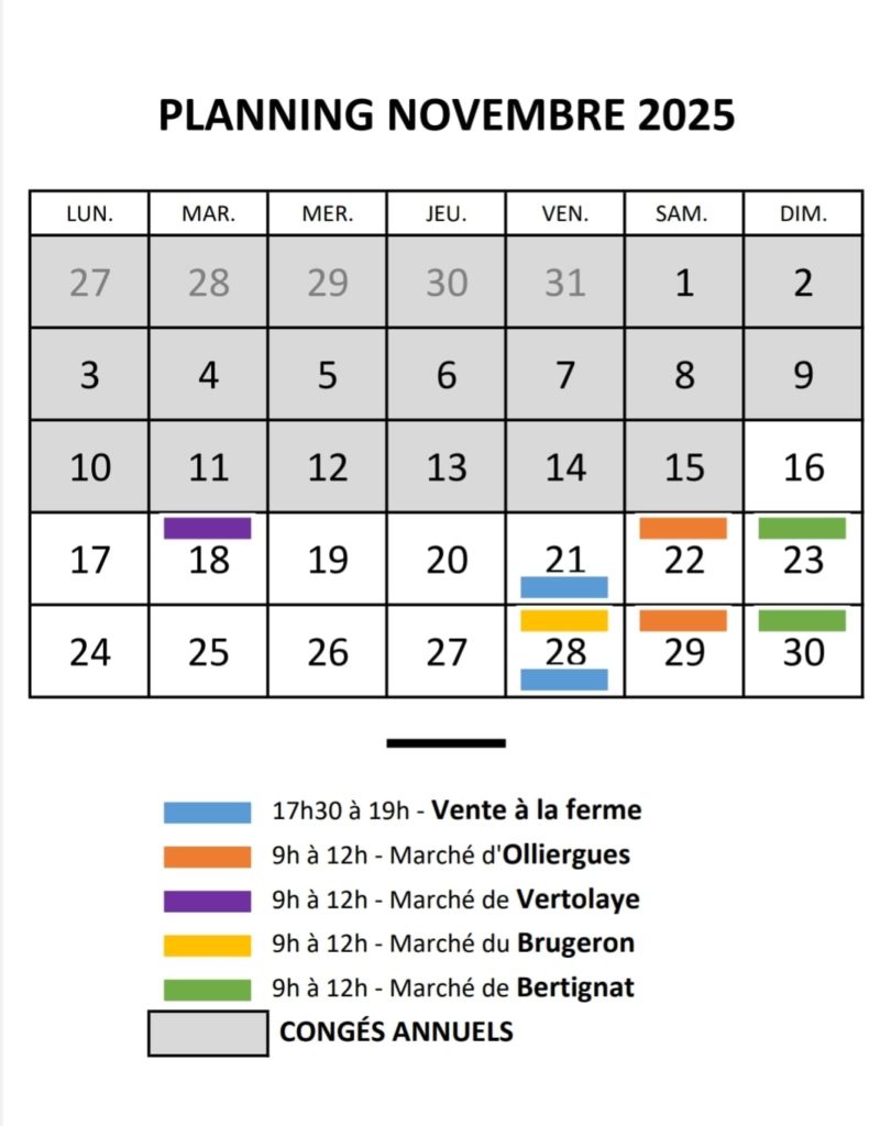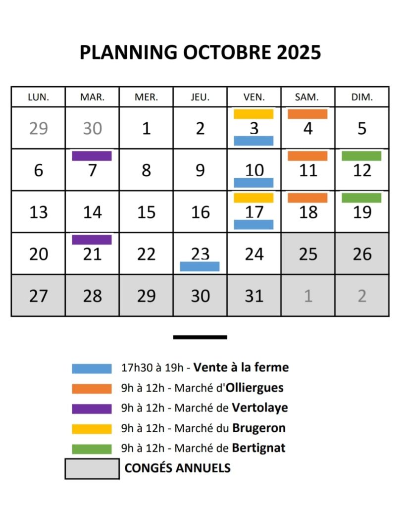 - OLLIERGUES – le samedi matin de 8h à 12h00 – Sauf Juillet et Août